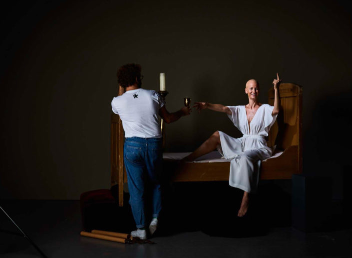 Die Hauptwerke werden mit den eigenen Körpern umgesetzt, dargestellt und kreiert. Ein identitätsstiftender Akt, der die Rezipierenden ihre eigenen Antworten formulieren lässt, und klassische Weltbilder sowie soziale Zusammenhänge hinterfragt. In den Serien VERA und EVA vernetzt KALA.m den Menschen in seiner Geschichte, seinem Glauben, in seinen Ängsten und seiner Hoffnung.